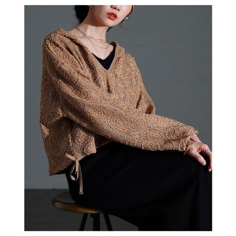 モール刺繍をあしらったレースが目を惹く、裾ドロスト仕様のショートフーディー。軽やかな印象で、さっと羽織るだけでもサマになります。レイヤードスタイルにもぴったりで、コーデに程よいアクセントを添えてくれる一枚です☆