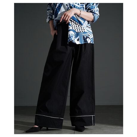 マルイウェブチャネル   /   サワアラモード   /   すべてのパンツ   /   パンツ   /   【パンツ】 ワイド ロング ハイウエスト パイピング タック ツイル バックウエストゴム 黒 白