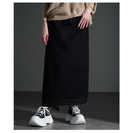 ケミカルウォッシュを施したブルーとブラックデニムが印象的なバックフレアヘムスカート。後ろに広がるシルエットが動きを生み、有りそうでなかった個性派デザインに。穿くだけでコーデがぐっと引き締まります☆