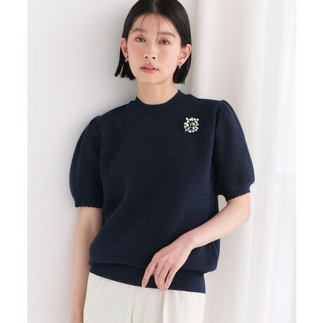 袖口と襟のリブにスカラップ風デザインを施した女性らしいデティールのニット。