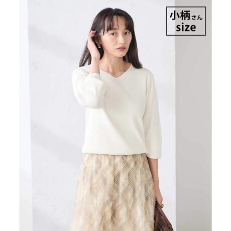 胸元の開きが気にならない絶妙なVネックで、上品&安心感抜群。
