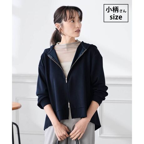 ・きれいな表面感の素材なので、パーカーなのにカジュアルすぎず大人も着こなしやすい一枚