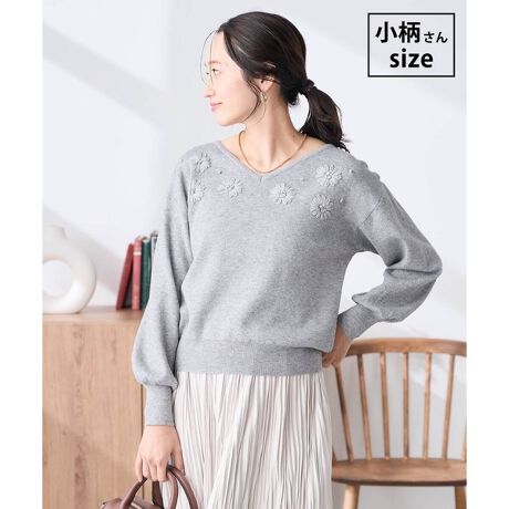 ・フラットな表面感のシンプルニットの胸元に同色の刺繍を施しました