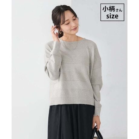 ・風合い良い柔らかなニットに同色のスパンコールでボーダー柄を表現
