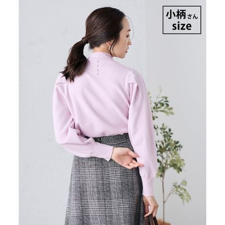 【低身長サイズ】プチハイネックショルダータックニット