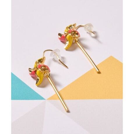 [型番:72WZ6101-2026]風車をモチーフにした遊び心あふれるピアス。小さな風車がくるくると回る姿が愛らしく、見ているだけで心が弾みます。カラフルな色使いが耳もとを華やかに彩り、和装にも洋装にも自然に馴染む軽やかで上品なデザインです。