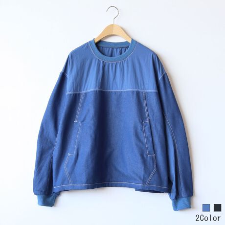 異素材ミックスが抜け感を演出し、オールシーズン活躍するプルオーバー。