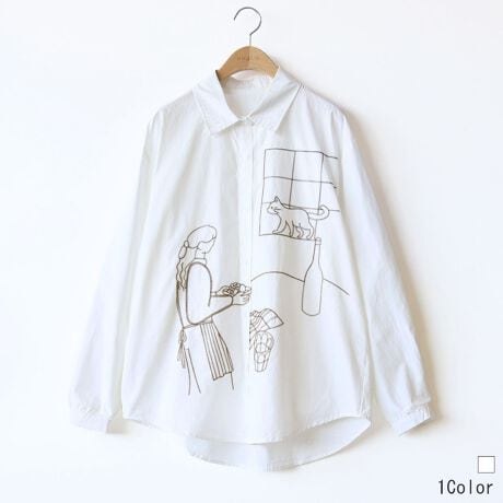 モチーフ刺繍が個性的に魅せるコットンシャツ。