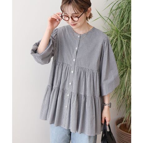 人気のブラウスが新色のブラックを加えてWEB限定で再登場!コットン×レーヨンのさっぱりとした素材で仕立てたティアードチュニックブラウス。ボタンダウンの衿と段差をつけたティアードギャザーが着映えを叶え、ふんわりと女性らしいシルエットに仕上げました。袖口はシャーリングゴムをプラスし、たくし上げてボリュームコントロールも可能に。コンパクトなボトムスと合わせるだけで、優しいニュアンスのメリハリある着こなしが完成します。デイリーからオフィス、デートまで幅広いシーンで活躍してくれる一枚です。※モデル着用画像は、光の当たり具合で色味が違って見える場合がございます。※お使いのモニター環境によって商品の色味が違って見える場合がございます。