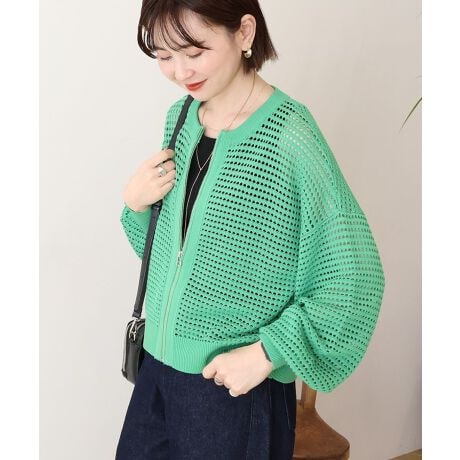 全面メッシュ編みで爽やかに仕上げたニットカーディガンが今季も登場。昨年モデルよりシルエットをコンパクトにし、前後差を付けることですっきりとした着映えに。強撚糸を用いたドライタッチな風合いと透け感により、さらっと軽く羽織れる一枚です。Tシャツに羽織ったりタンクトップと合わせたりなど、レイヤードスタイルにおすすめです。