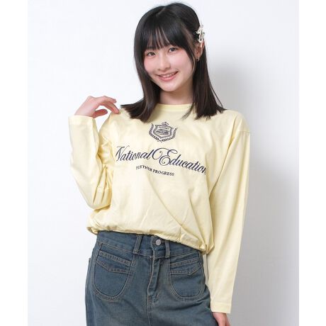【item info】裾ドロストデザインでシルエットの変化を楽しめるロンT。絞り具合を調整することで、スタイリングに合わせた着こなしが可能です。立体感のある発泡プリントの英字ロゴや上品な印象の刺繍英字ロゴを施したデザイン。それぞれ異なる表情で、シンプルながらコーデのアクセントに◎デニムやスカート、ワイドパンツとも相性が良く、デイリーからトレンドスタイルまで幅広く活躍する一枚です。接触冷感素材を使用し、ひんやりとした着心地で暑い季節も快適に着用できます。