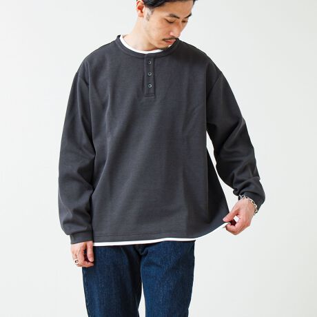 程よいハリと軽さが魅力の杢ダンボール素材を使用した、ヘンリーネック仕様のロングスリーブ。