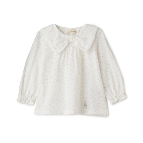 小さな星の模様ときらめくキリンの刺しゅうが目を惹く長袖Tシャツです。