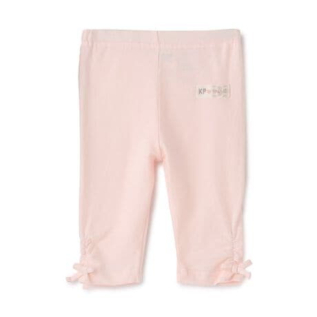 ベア天竺素材の穿きやすい6分丈スパッツ。伸びの良い生地で動きやすく、デイリー使いにぴったりです。裾の両脇にギャザーを寄せ、共地リボンを付け、さりげない可愛さをプラス。チュニックやワンピースとの相性もよく、いろいろなコーディネートに採り入れやすい1枚。色違いで揃えるのもおすすめです。