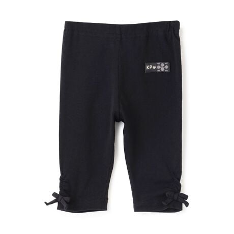ベア天竺素材の穿きやすい6分丈スパッツ。伸びの良い生地で動きやすく、デイリー使いにぴったりです。裾の両脇にギャザーを寄せ、共地リボンを付け、さりげない可愛さをプラス。チュニックやワンピースとの相性もよく、いろいろなコーディネートに採り入れやすい1枚。色違いで揃えるのもおすすめです。
