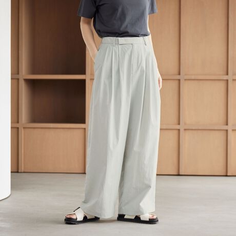 ほどよいハリ感と軽やかな着心地に加え、ご自宅で洗濯可能な利便性を兼ね備えたパンツは、春夏のデイリーユースにおすすめです。