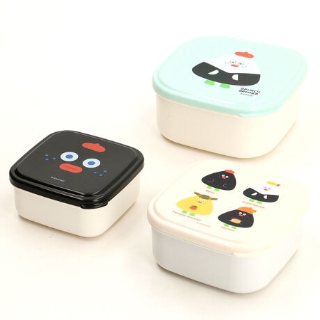 トースト、ダック、オニ&ギリのきょとんとした表情がかわいい3サイズのランチボックスのセット。サイズ違いの入れ子式なので、食べ終わった後は、コンパクトにまとめられます。"ゆるかわいい"キャラクターたちのデザインは、忙しい日々やリラックスしたい休日のランチタイムを癒してくれます。