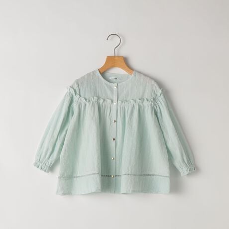 少し長めのチュニック丈で、ヨーク部分にはギャザーフリルをたっぷりと施した一枚。