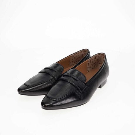 程よく丸みを持たせたポインテッドトゥのフラットローファー。かかとに芯が入っていない為、足当たり柔らかく履ける一足です。