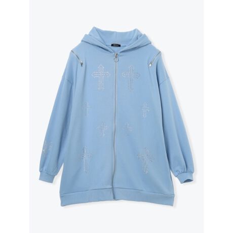 ラインストーンで描かれたクロスモチーフが煌びやかなアクセントになるパーカー。
