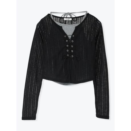 シアーワイドリブレースアップトップス