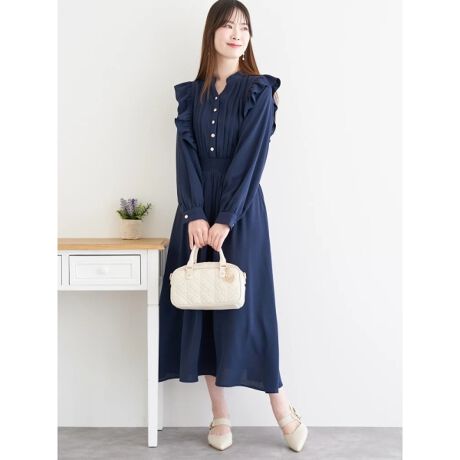 [型番:26550727430]細やかなピンタックが上品な女性らしさを演出するワンピース。ショルダー部分のフリルが華やかなアクセントとなり、1枚で着映えするデザインです。ウエストのシャーリング切り替えがメリハリのある印象をプラス。休日のお出かけシーンに大活躍してくれるアイテムです。モデル(A柄着用)身長:165cmMサイズ着用モデル(ベージュ/グレー着用)身長:165cmMサイズ着用モデル(紺着用)身長:160cmMサイズ着用