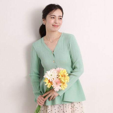 トレンドのペプラムシルエットが美しいニットトップス。