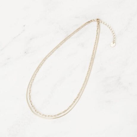 デザインの違うチェーンを2本組み合わせた2連ネックレス。