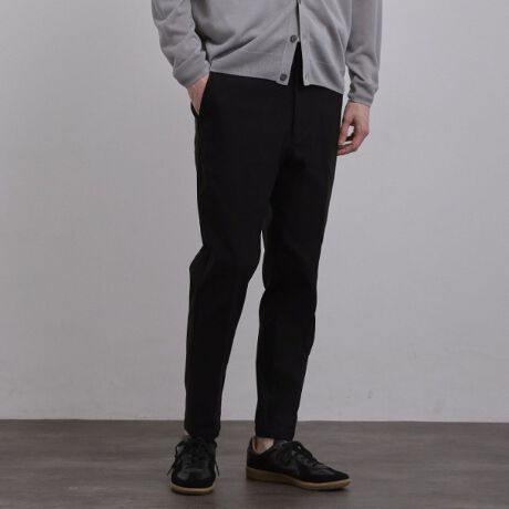 フロントにはセンタープレスを施し、カジュアルな素材感ながらも、スラックスのような上品な印象をプラスしました。