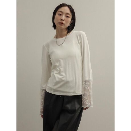 レーススリーブが抜け感と女性らしさが漂う雰囲気に。
