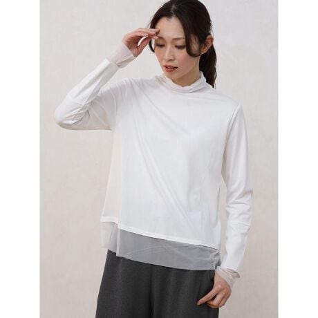■ポイント使いしたシアー素材がアクセントになるレイヤードスタイルにぴったりのカットソー。