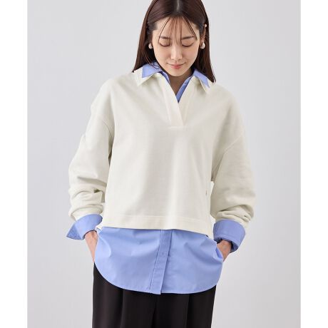 ・トレンド感のある衿デザインが目を引くデザインスウェット。