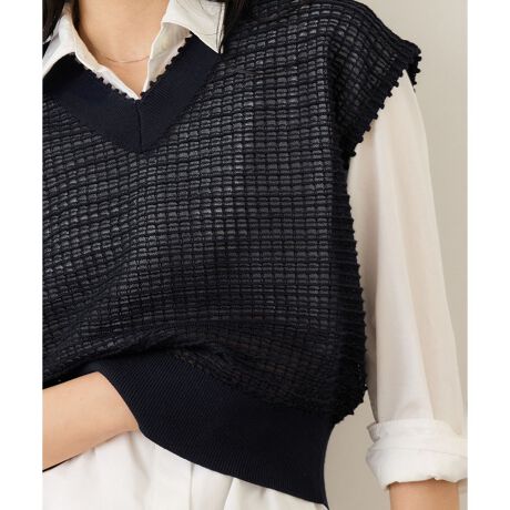 透け感のあるピンタック編みが上品に映えるプルオーバー。