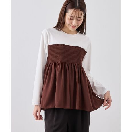 シャーリングビスチェ風ドッキングロングスリーブカットソー/リンクコーデ