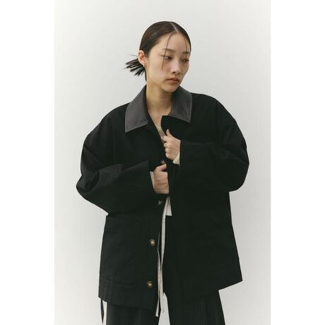 [型番:500JSB30-0141]モデル身長163cm(FREEサイズ着用)フェイクレザーの襟がアクセントになったカバーオール。ワークテイストなデザインに、異素材のコントラストを加えることで、程よく洗練された印象に仕上げました。さらっと羽織れる軽さで、季節の変わり目にも活躍。デニムやスラックス、スカートまで幅広く合わせやすく、カジュアルにもきれいめにも着こなせる一枚です。透け感なし、ストレッチなし。【お手入れ方法】ドライクリーニング
