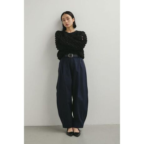 [型番:500JSB30-0561]モデル身長160cm(FREEサイズ着用)立体感のある素材が印象的なバルーンシルエットが特徴のデザイントップス。柔らかな素材感で着心地が良く、1枚で華やかな印象に導きます。シンプルなボトムと合わせるだけで、今年らしいバランスのスタイリングが完成します。透け感なし、ストレッチなし。【お手入れ方法】マシンウォッシュ可