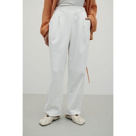 モデル身長175cm(Mサイズ着用)タックデザインとバレルシルエットが特徴のスウェットパンツ。腰まわりに程よいゆとりを持たせつつ、立体感のあるフォルムでトレンドライクな着こなしを演出します。やわらかなスウェット素材を使用したリラックス感のある履き心地も魅力。シンプルなトップスと合わせるだけで、こなれたカジュアルスタイルが完成する一枚です。透け感なし、ストレッチあり。【お手入れ方法】マシンウォッシュ可