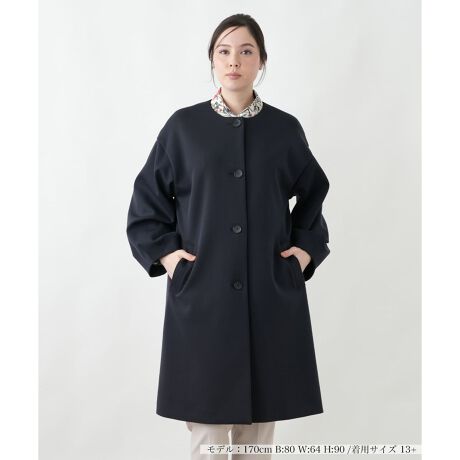 国産のダンボールニット生地でお作りした、上品なロングコートです。トリアセテートを混紡した素材は、適度なハリと弾力を持ち合わせ、羽織るだけで美しい立体的なシルエットを保ちます。光沢を抑えたマットな質感が、大人のエレガンスを演出。厚すぎない生地感で、季節の変わり目のアウターとして重宝する一着です。