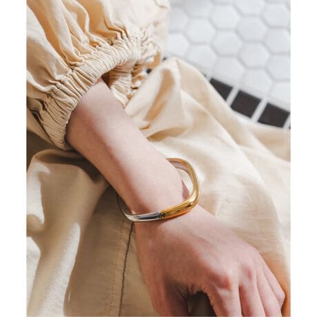 スクエアのシルエットとゴールド×シルバーのコントラストが手元を上品に彩ります。