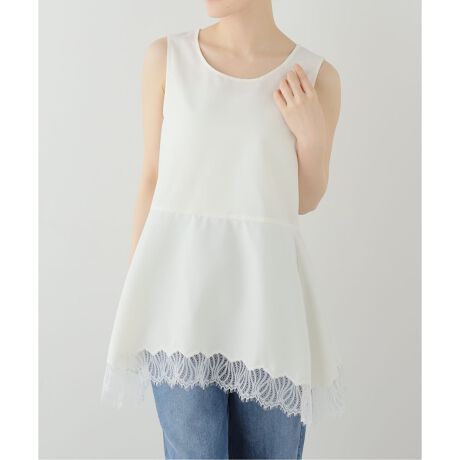サテン素材にレースを刺繍した、トレンド感高まる華やかなブラウス。