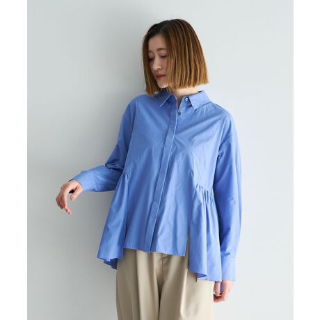 切り替え位置から広がるペプラムシルエットが自然な広がりを演出するシャツ。
