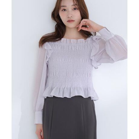 《限定店舗の発売日》相鉄ジョイナス店:3/中旬天王寺MIO店:3月中旬広島ミナモア店:3月中旬シアー感のあるチェック素材を使用したフェミニンな印象のトップス。細かく華奢なチェック柄が、繊細で上品な雰囲気を演出します。身頃のシャーリングデザインとコンパクトなシルエットで、着映えとスタイルアップが叶います。バックスタイルは華奢なリボン付きで、後ろ姿も印象的に見せてくれます。<素材>軽やかで透け感のあるチェック柄シアー素材です。柔らかくてしなやかな風合いで、フェミニンな表情が楽しめます。<詳細>仕様・開閉なし裏地・身頃はあり、袖はなし透け感・袖はややあり / 光沢・なし / 伸縮性・なし生地の厚さ・薄手※モデルの着用画像の場合、光の当たり具合により、実際の色味と異なって見えることがございます。色味は、商品単体の画像をご参照ください。
