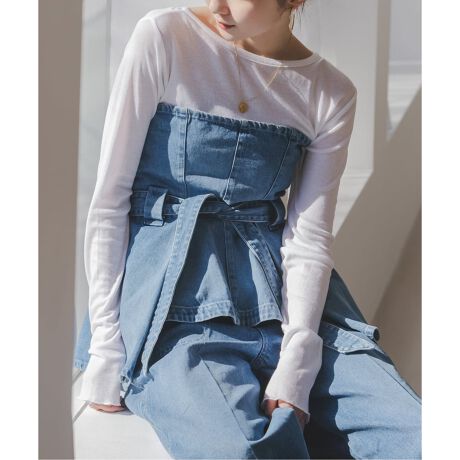 デニム素材で作られた遊び心たっぷりのビスチェ。