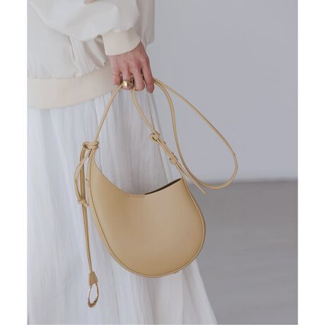 レザーのような風合いの合成皮革で使い勝手も抜群。印象的なシルエットも相まって持つだけでアクセントが生まれます。