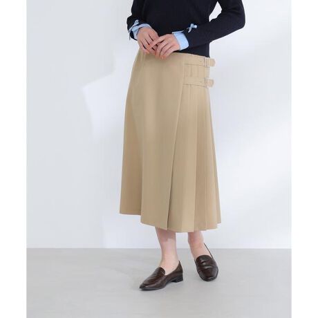 アシンメトリーなプリーツデザインが目を引くスカート。新鮮なミドル丈で、今年らしいバランスに仕上げています。ダブルバックルがさりげないアクセントになり、スタイリングにポイントをプラス。すっきりとしたシルエットで旬の着こなしが楽しめます。<素材>程よいハリと落ち感を兼ね備えた素材を使用。プリーツがキレイに映え、すっきりとしたシルエットを保ちます。<詳細>仕様・後ろファスナー裏地・あり透け感・なし / 光沢・なし / 伸縮性・なし生地の厚さ・普通※モデルの着用画像の場合、光の当たり具合により、実際の色味と異なって見えることがございます。色味は、商品単体の画像をご参照ください。