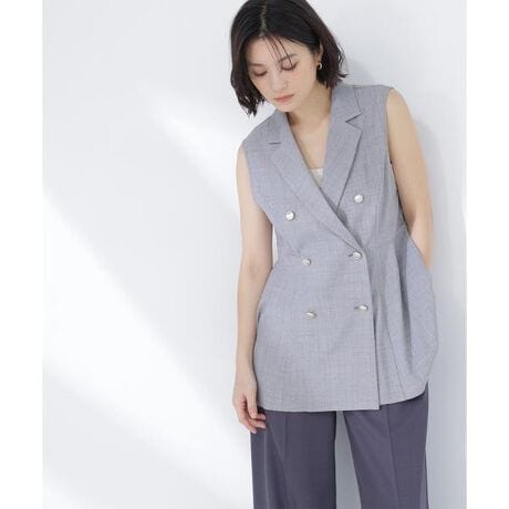 ウエストラインを美しく見せてくれるペプラムシルエットのテーラードジレ。ライトゴールドカラー釦が上品なアクセントとなり、華やかな印象をプラス。ジャケット感覚で重ね着したり、シンプルなインナーと合わせても一枚で映えるデザインです。<素材>細かいピンヘッドチェック柄の素材を使用しています。<詳細>仕様・前ボタン裏地・なし透け感・なし / 光沢・なし / 伸縮性・なし生地の厚さ・普通 ※モデルの着用画像の場合、光の当たり具合により、実際の色味と異なって見えることがございます。色味は、商品単体の画像をご参照ください。