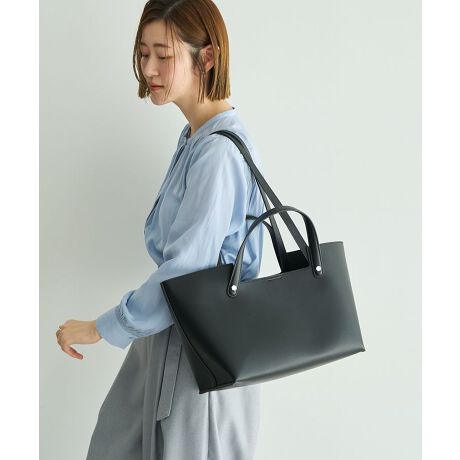 滑らかな質感の合成皮革は柔らかさがありつつもしっかり自立し、広めのマチで使いやすさも抜群です。