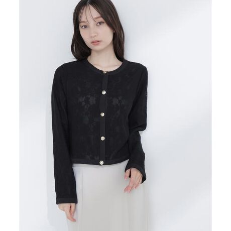 レース素材で上品に仕立てたブルゾン。裏地にシフォンを使用し、程よい透け感を残した軽やかな仕上がりで、ゴールドカラー釦がさりげないアクセントになっています。コンパクトなサイズ感で合わせやすく、キレイめからカジュアルまで幅広く活躍。華やかさと着やすさを両立したデザインです。<素材>繊細なレース素材に、軽やかなシフォン裏地を合わせた生地です。<詳細>仕様・前ボタン裏地・あり透け感・ややあり / 光沢・なし / 伸縮性・なし生地の厚さ・普通※モデルの着用画像の場合、光の当たり具合により、実際の色味と異なって見えることがございます。色味は、商品単体の画像をご参照ください。
