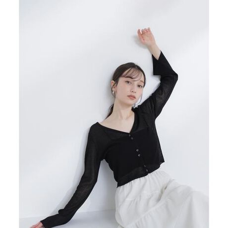今から真夏の冷房対策まで活躍してくれるカーディガン。シアー素材で抜け感のある雰囲気を出し、細かいリブ編みで華奢な印象に見せてくれます。フレアスリーブでさりげないデザインポイントをプラス。コンパクトなサイズ感でワンピースやスカート、パンツにも合わせやすく、スタイルアップも叶えてくれます。<素材>程よい透け感のハイゲージシアーリブニットです。<詳細>仕様・前ボタン裏地・なし透け感・なし / 光沢・ややあり / 伸縮性・あり生地の厚さ・普通 ※モデルの着用画像の場合、光の当たり具合により、実際の色味と異なって見えることがございます。色味は、商品単体の画像をご参照ください。
