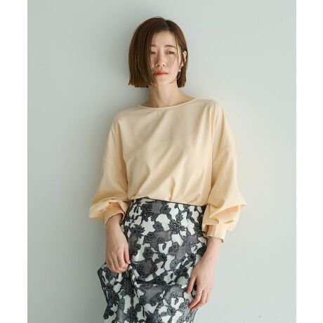 袖口はシャーリングで手首まわりをすっきり見せ、華やかさと上品さを両立します。